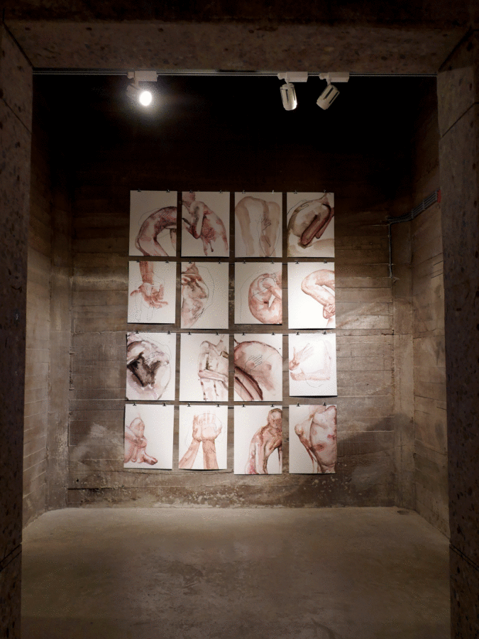 The series Touch is a serie consisting of 16 drawings in which our inner suffering and need for human contact are made visible through body language. In most of the drawings, a hand is present that suggests touching the figure. The drawings invites the viewer to look inward and reflect on their own vulnerable moments. To the need to be touched, to receive compassion, or to give. It resulted in this installation which was on view at Noordkade, Veghel.